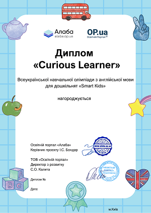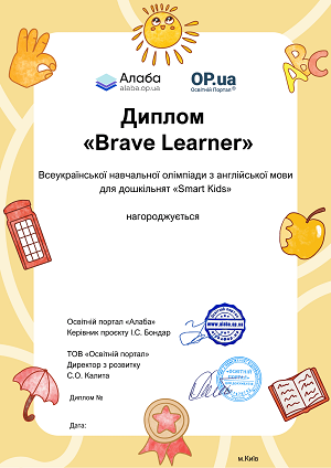 ▶️ Освітній портал «Алаба», за організаційної підтримки ТОВ «Освітній портал»ТМ https://op.ua , запрошує дошкільнят (5-7 років) дистанційно взяти участь у Всеукраїнській навчальній олімпіаді з англійської мови для дошкільнят "Smart Kids".