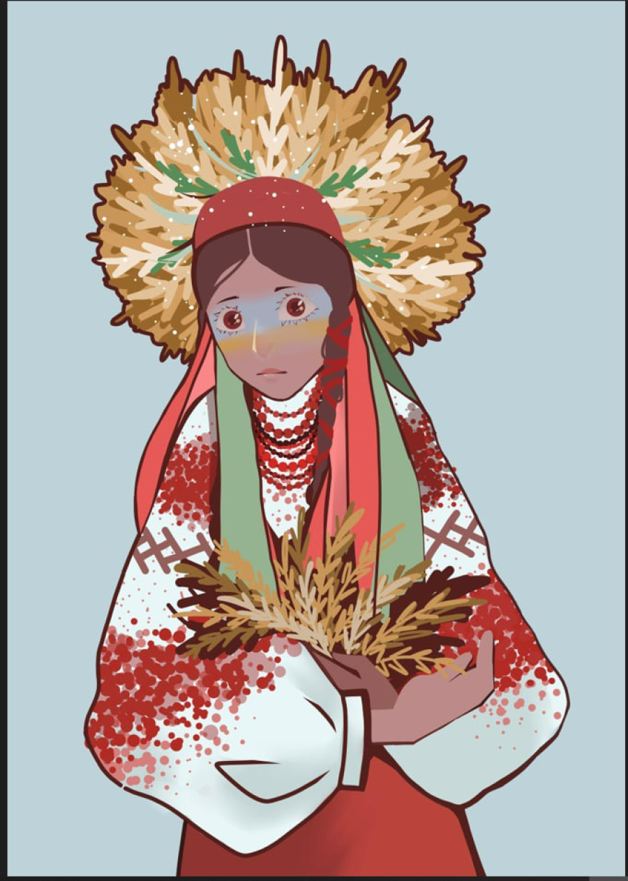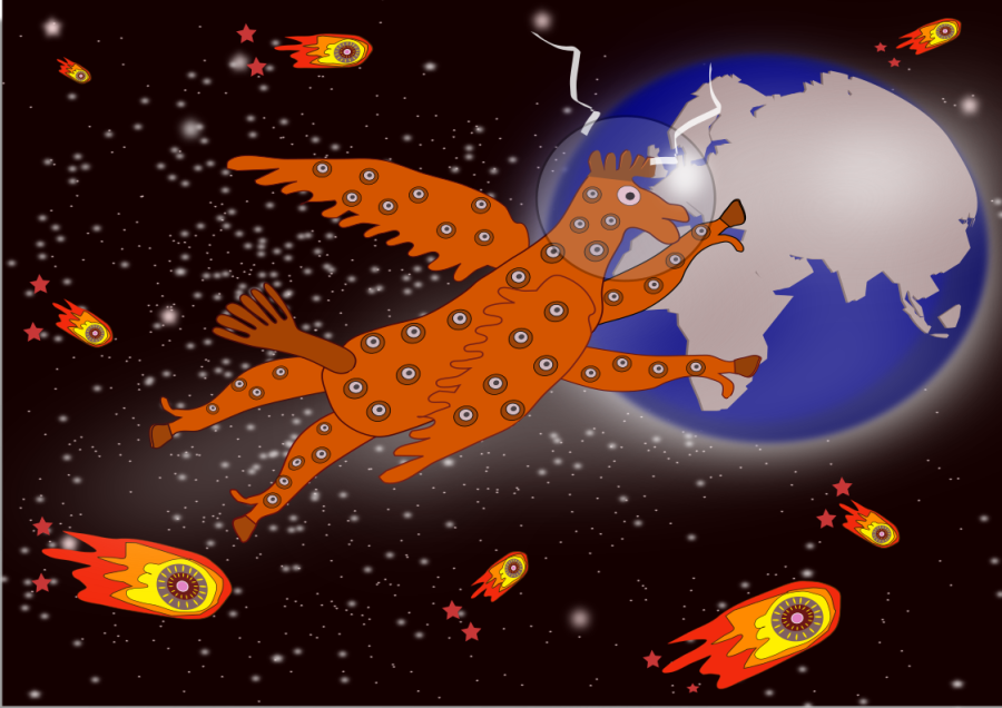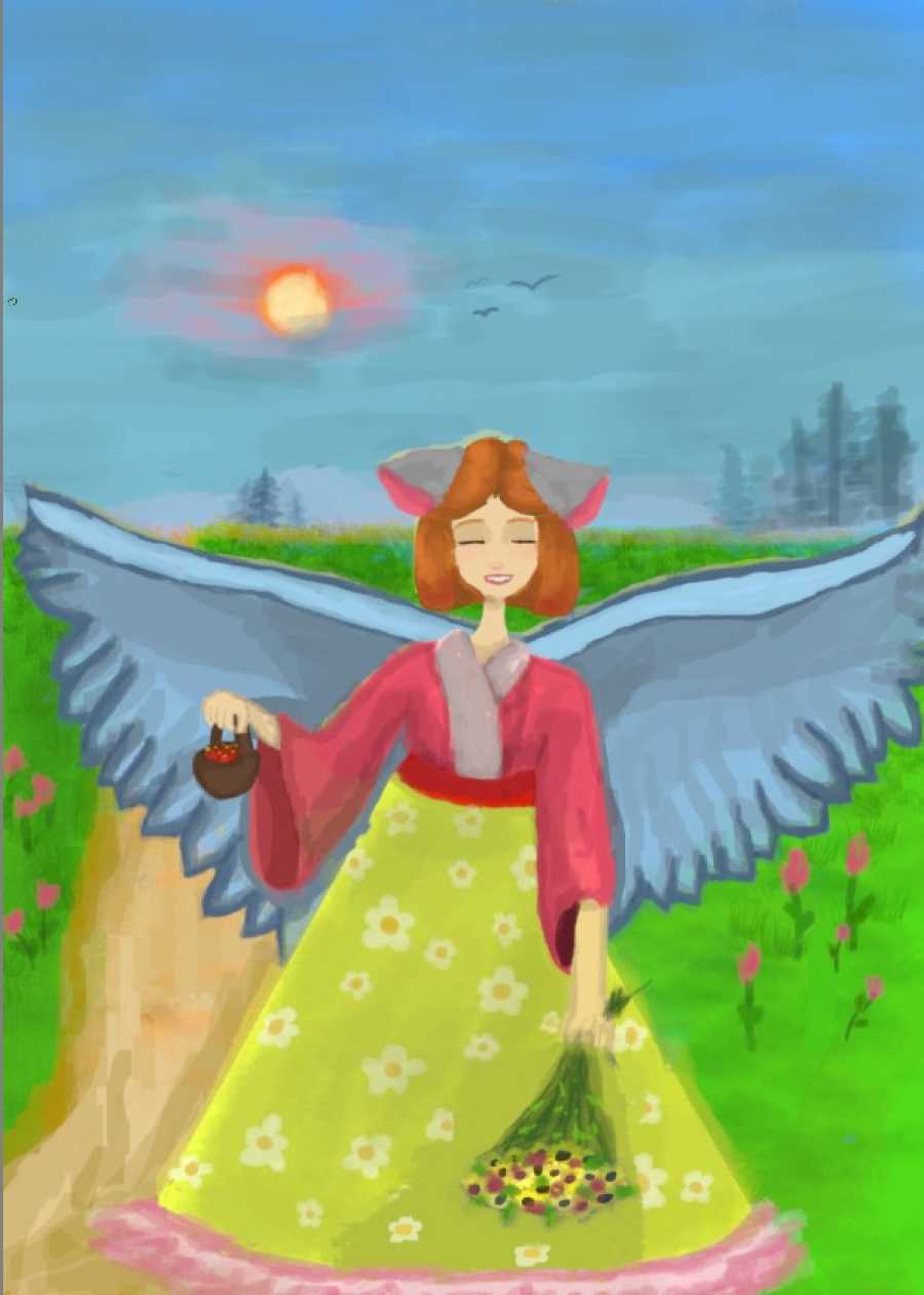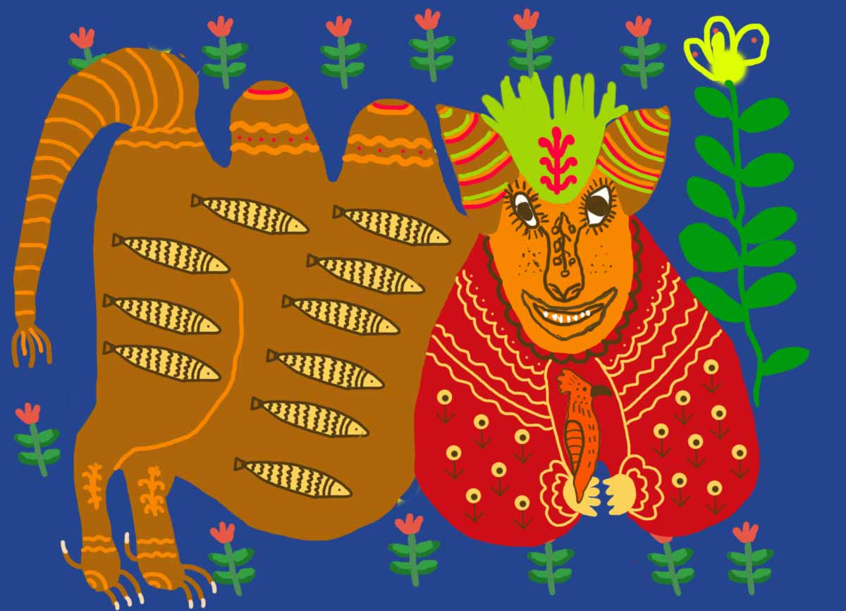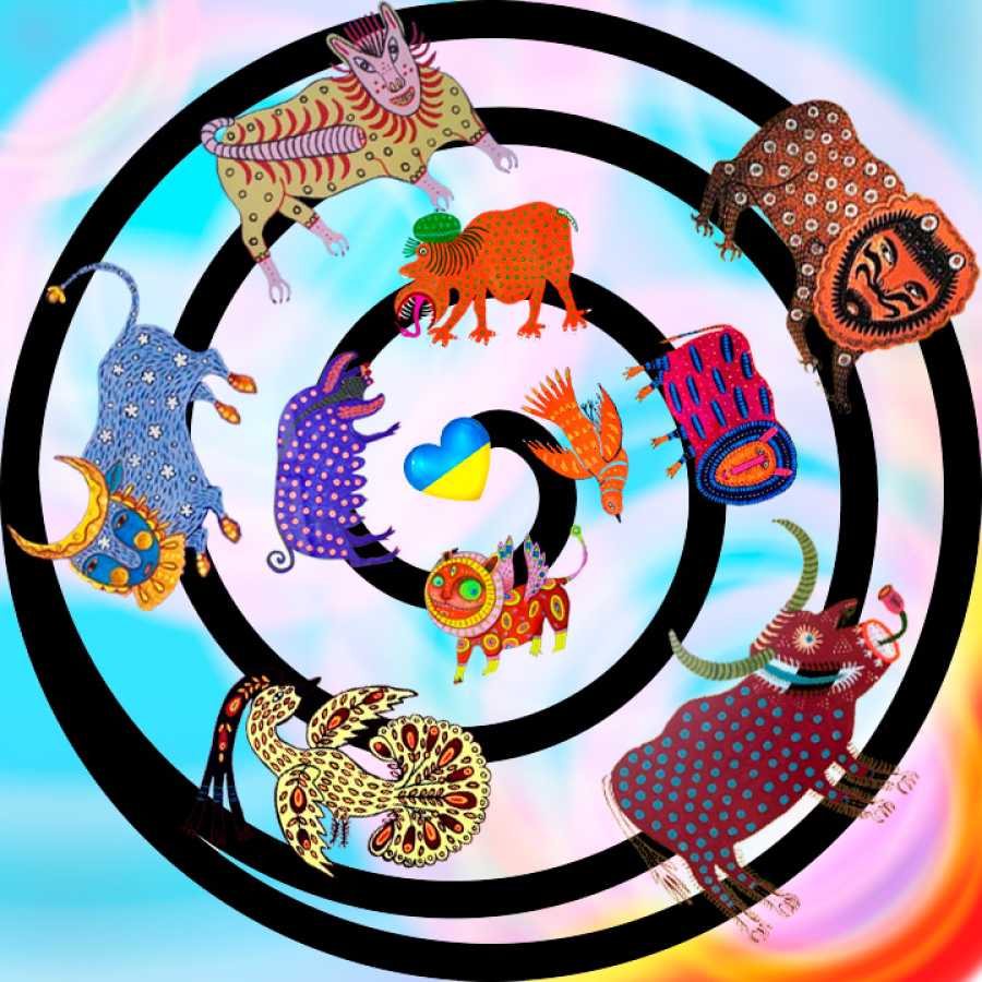 За мотивами робіт М.Примаченко " Водний звір з другом"