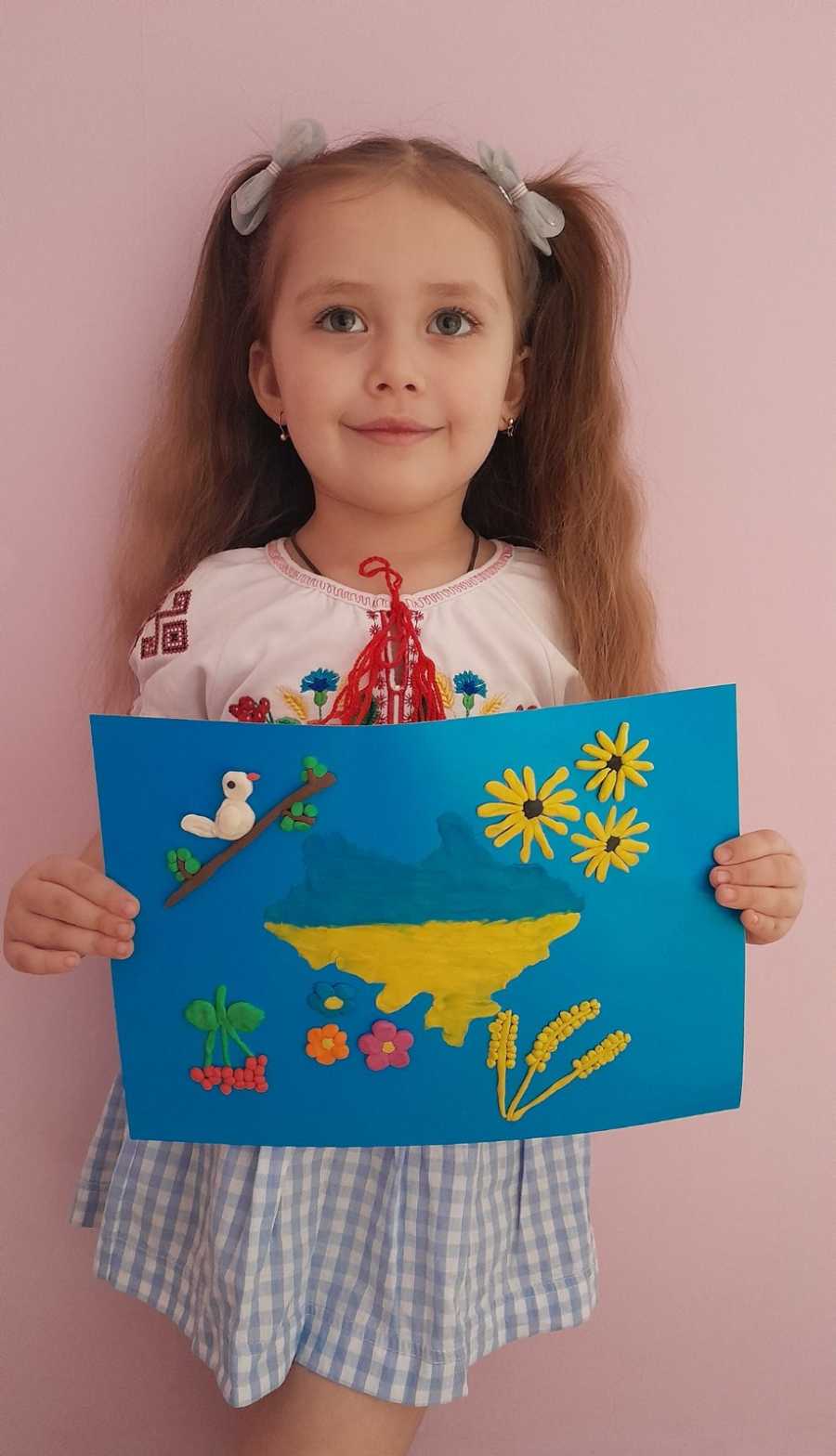 Моя Україна — то мамина ласка, Червона калина, бабусина казка. Це соняхи в цвіті, горобчиків зграя... Я кращої в світі країни не знаю.