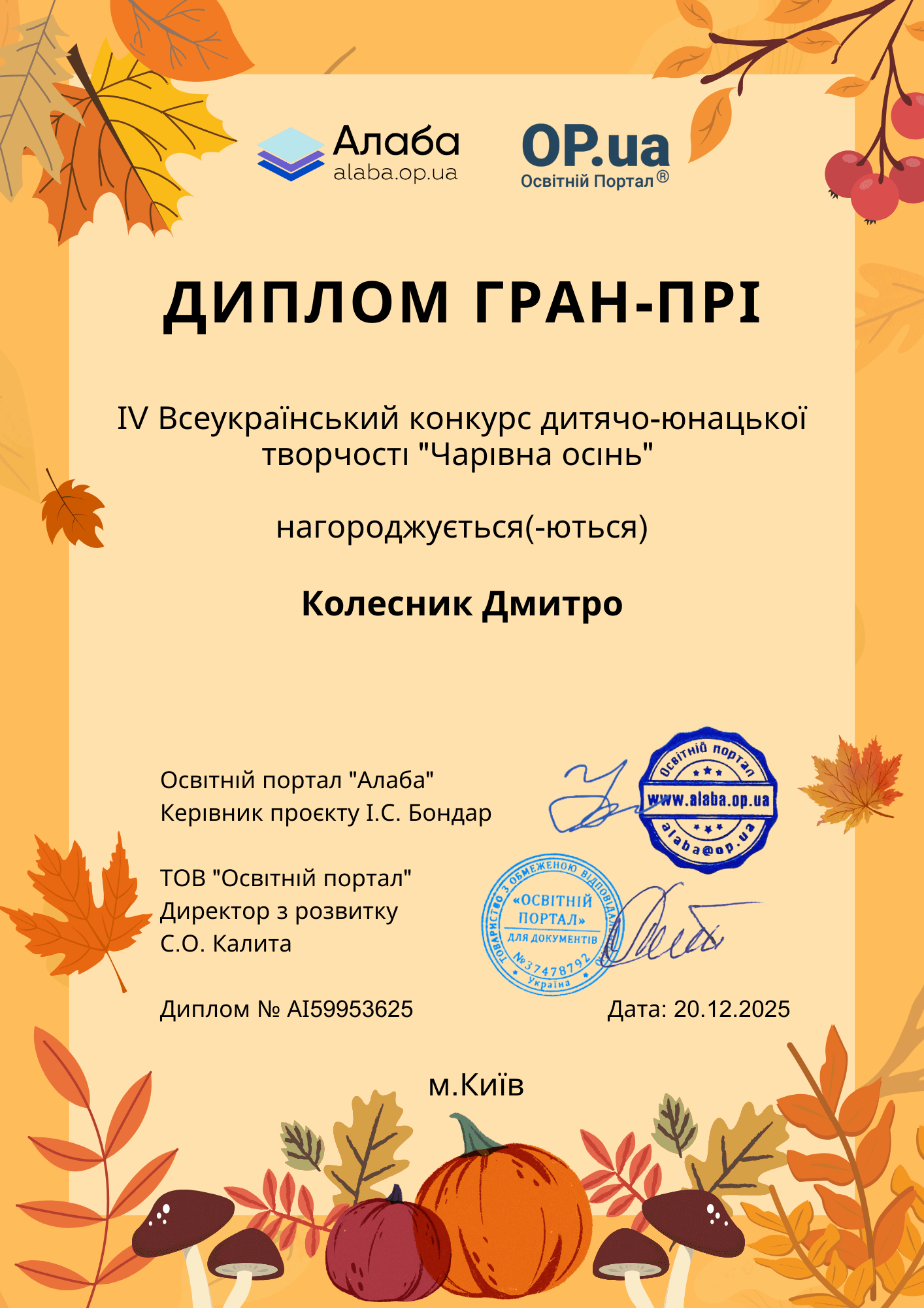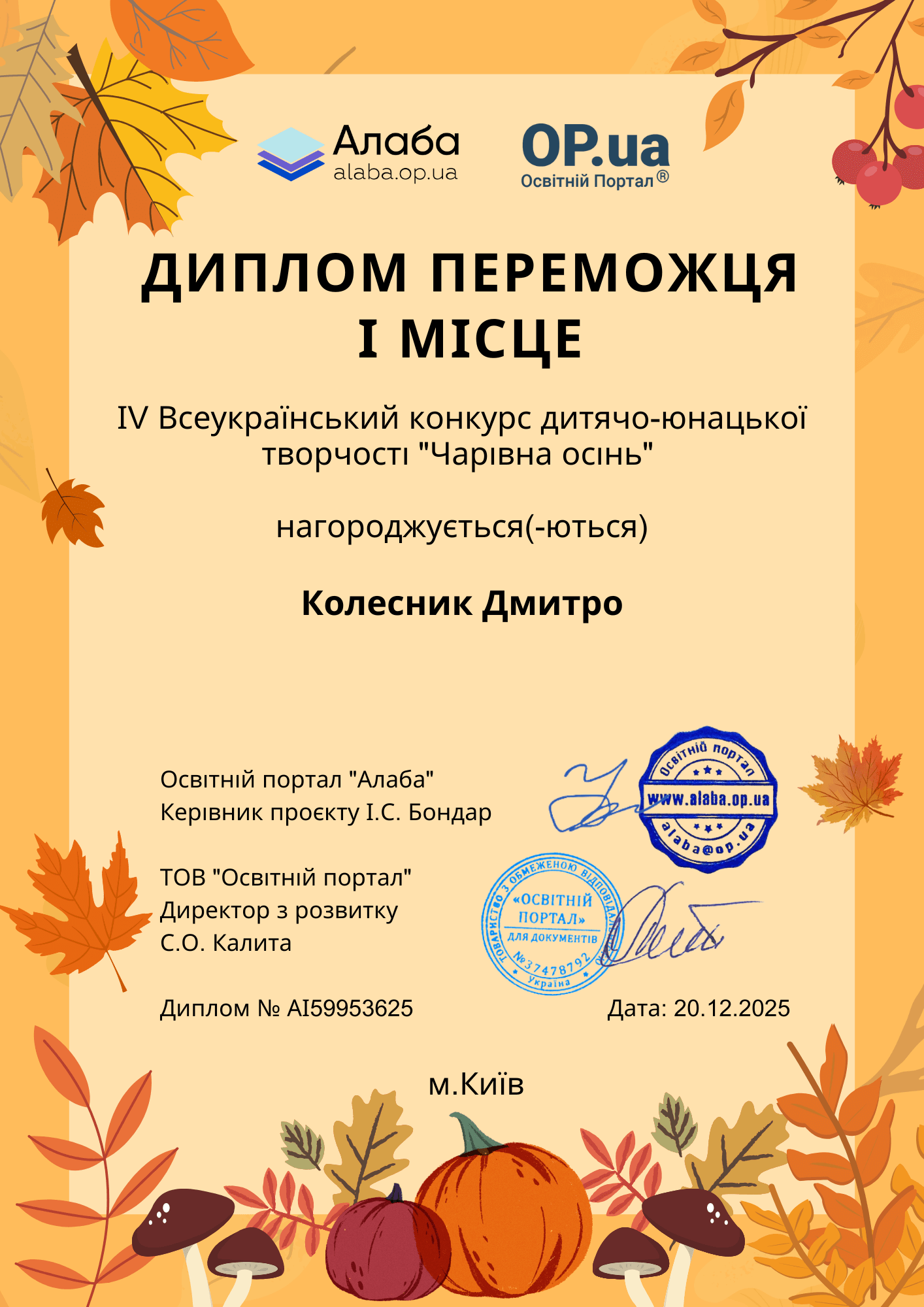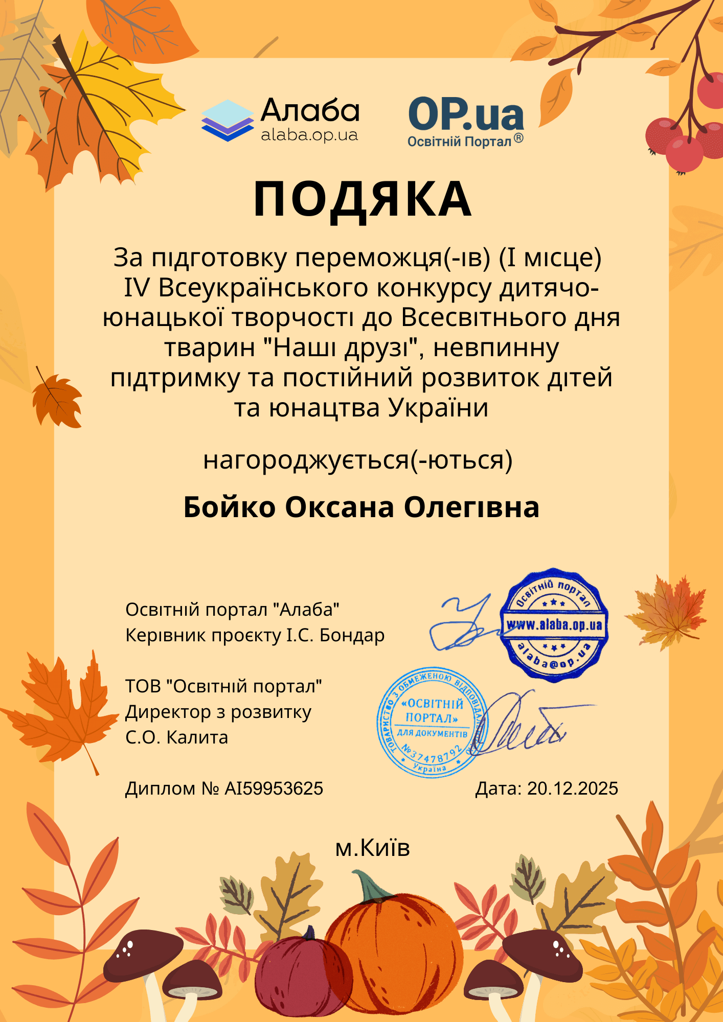 Приєднуйтесь до нас у Facebook, там ми публікуємо результати наших конкурсів - https://www.facebook.com/alaba.op.ua