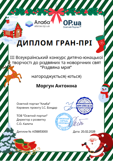 Освітній портал Алаба, за організаційної підтримки ТОВ «Освітній портал»ТМ https://op.ua, запрошує до участі у ІІI Всеукраїнському конкурсі дитячо-юнацької творчості до різдвяних та новорічних свят "Різдвяна мрія".